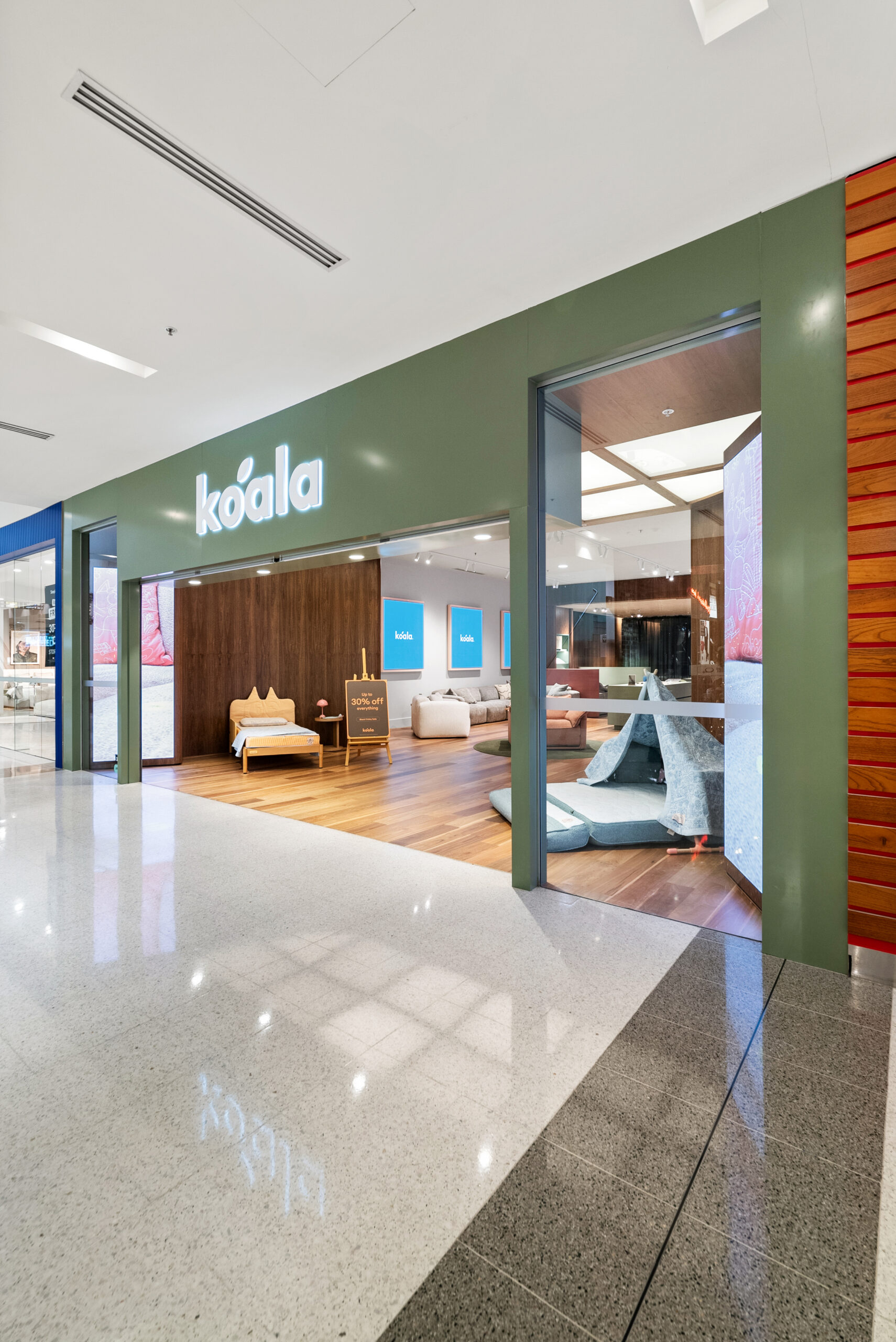 LSC Fitouts is proud to have delivered Koala’s first-ever store in Moore Park, NSW. This fitout demonstrates our expertise in creating welcoming retail spaces through thoughtful planning, quality craftsmanship, and attention to detail. Natural materials and mid-century modern influences have been seamlessly integrated to create a balanced environment that supports customer engagement while remaining highly functional and durable.